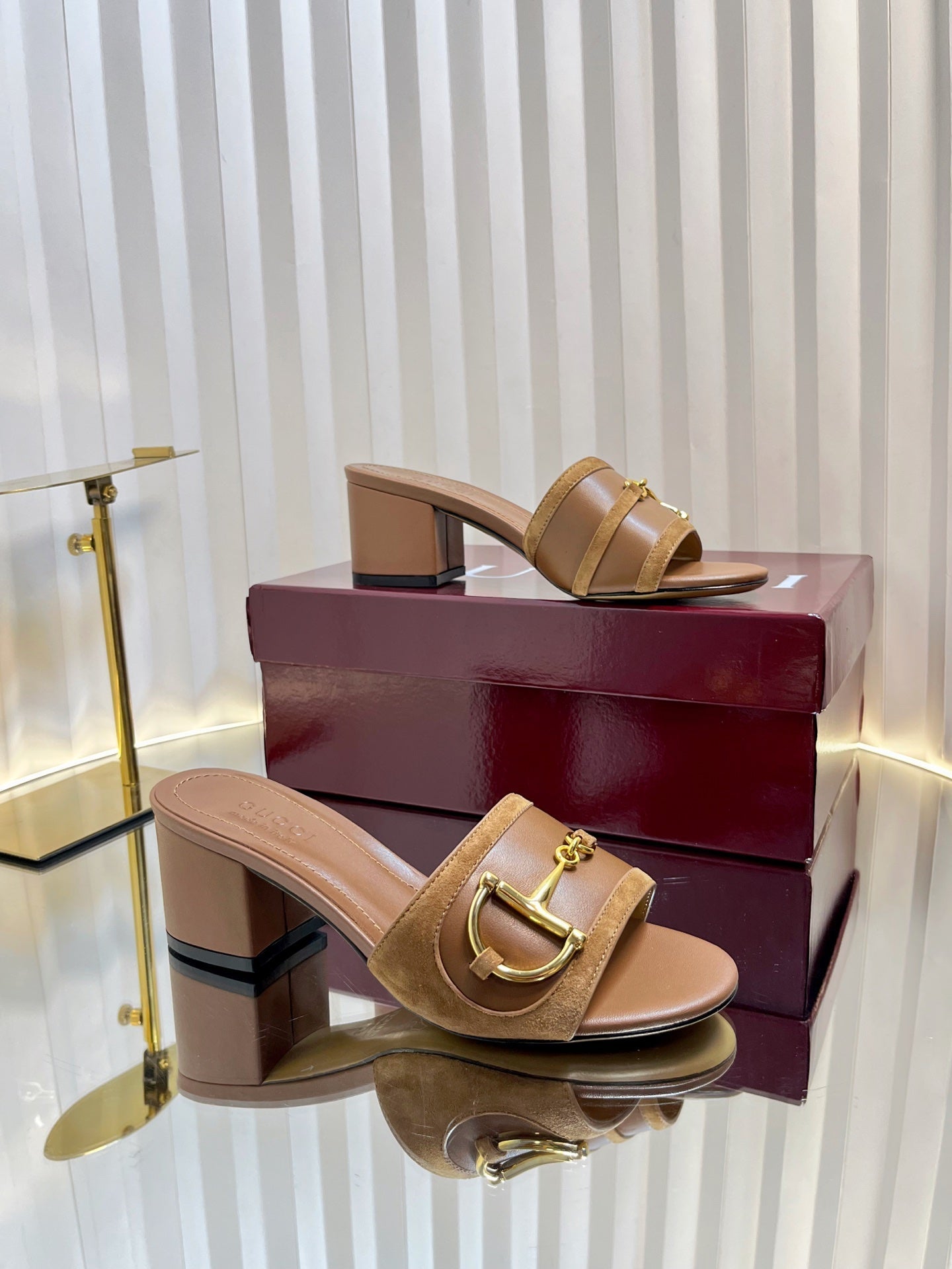 GC 25 Horsebit Sandals 50mm Brown Suede Sheepskin 294654