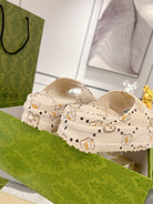 GC 25 Interlocking G 50mm Slide Sandal Monogram Beige Cowhide 292389