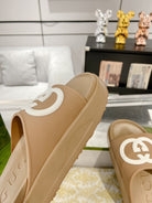 GC 25 Interlocking G 50mm Slide Sandal White Brown Cowhide 292400