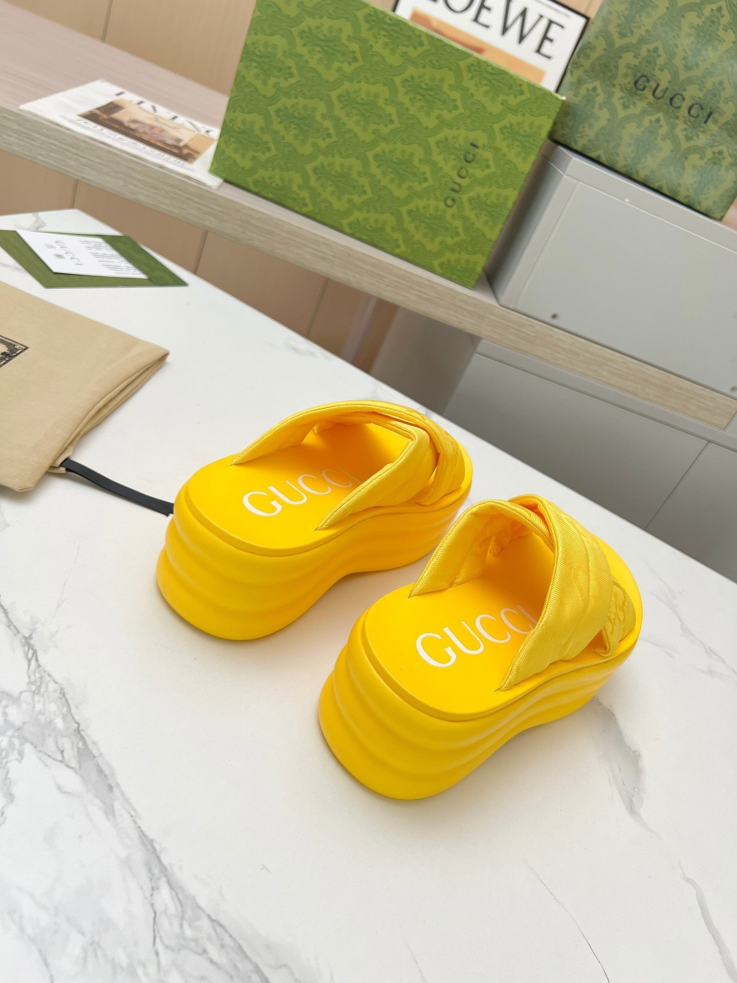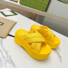GG waterproof platform slippers yellow fabric