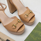 GG Sandales Cuir Noir Brown Tawny