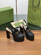 GG WOMEN'S HORSEBIT PLATFORM SLINGBACK IN BLACK CALFSKIN