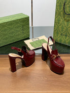 GG WOMEN'S HORSEBIT PLATFORM SLINGBACK IN ROSSO ANCORA RED CALFSKIN