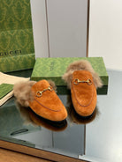 HORSEBIT MULE IN BRONZE ORANGE SUEDE AND LAMB WOOL LINING