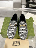 MEN'S LOAFER WITH HORSEBIT IN BLACK MIX WHITE MONOGRAM JACQUARD FABRIC