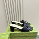 MID-HEEL 5 CM MULE IN BLACK CALFSKIN
