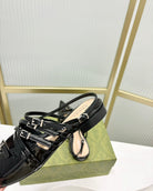STRAPPY FLAT SLINGBACK IN BLACK GLOSSY CALFSKIN