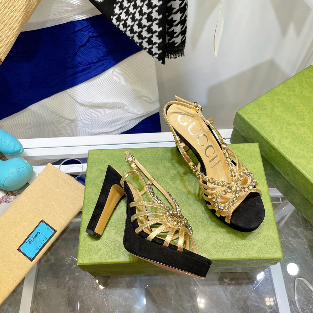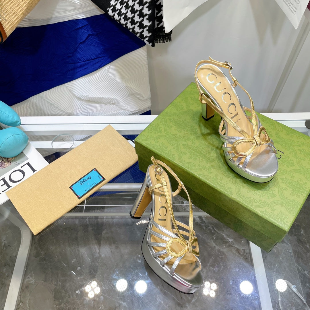 GG CRYSTAL HIGH HEEL SANDAL SLIVER CALFSKIN SPECIAL