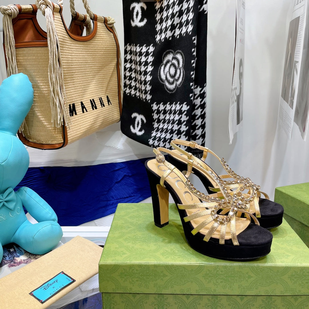 GG CRYSTAL HIGH HEEL SANDAL BLACK CALFSKIN SPECIAL