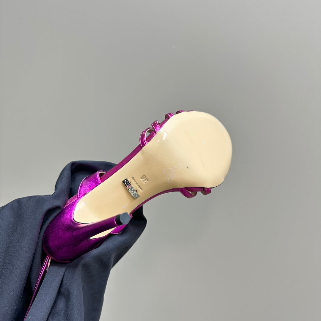 GG CRYSTAL HIGH HEEL SANDAL BRIGHT PINK LAMBSKIN