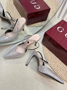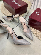 GC Crystal-Embellished Slingbacks Silver Silk Sheepskin 294610