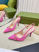 GC Horsebit Slingback Pump 100mm Pink Canvas Sheepskin 294551