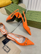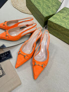 GC Horsebit Slingback Pump 50mm Orange Canvas Sheepskin 294544