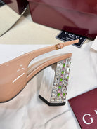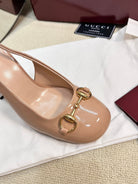 GC Horsebit Slingback with Crystal 95mm Rose Beige Patent Leather 294597