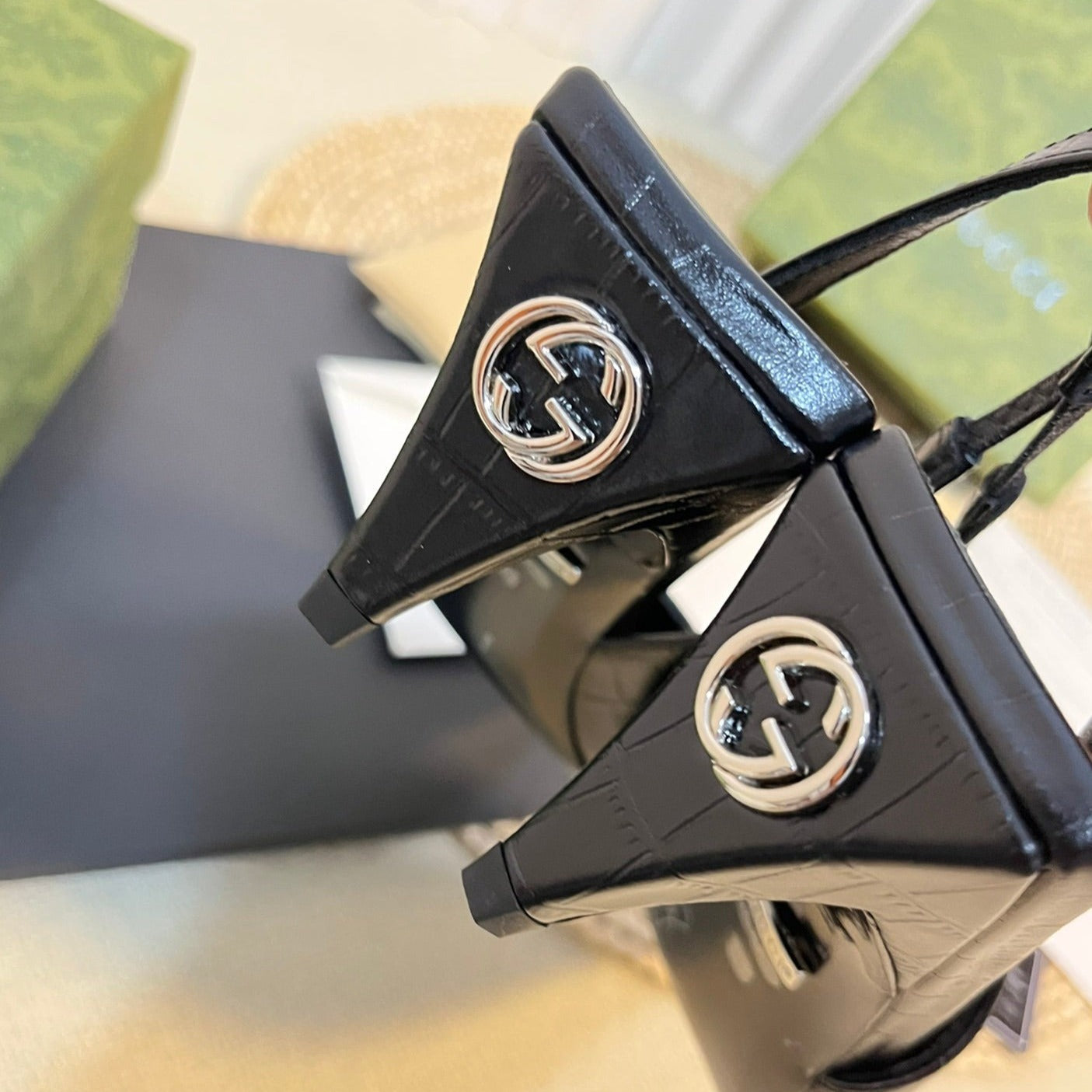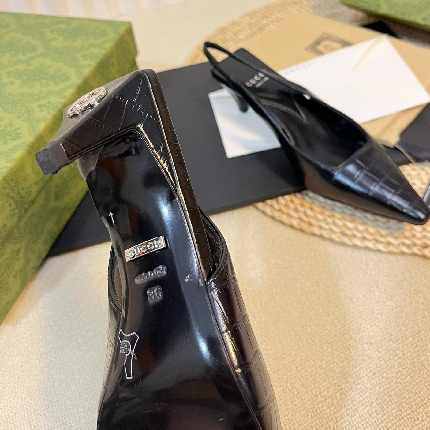 GG SLINGBACK HIGH HEEL PUMP BLACK CALFSKIN