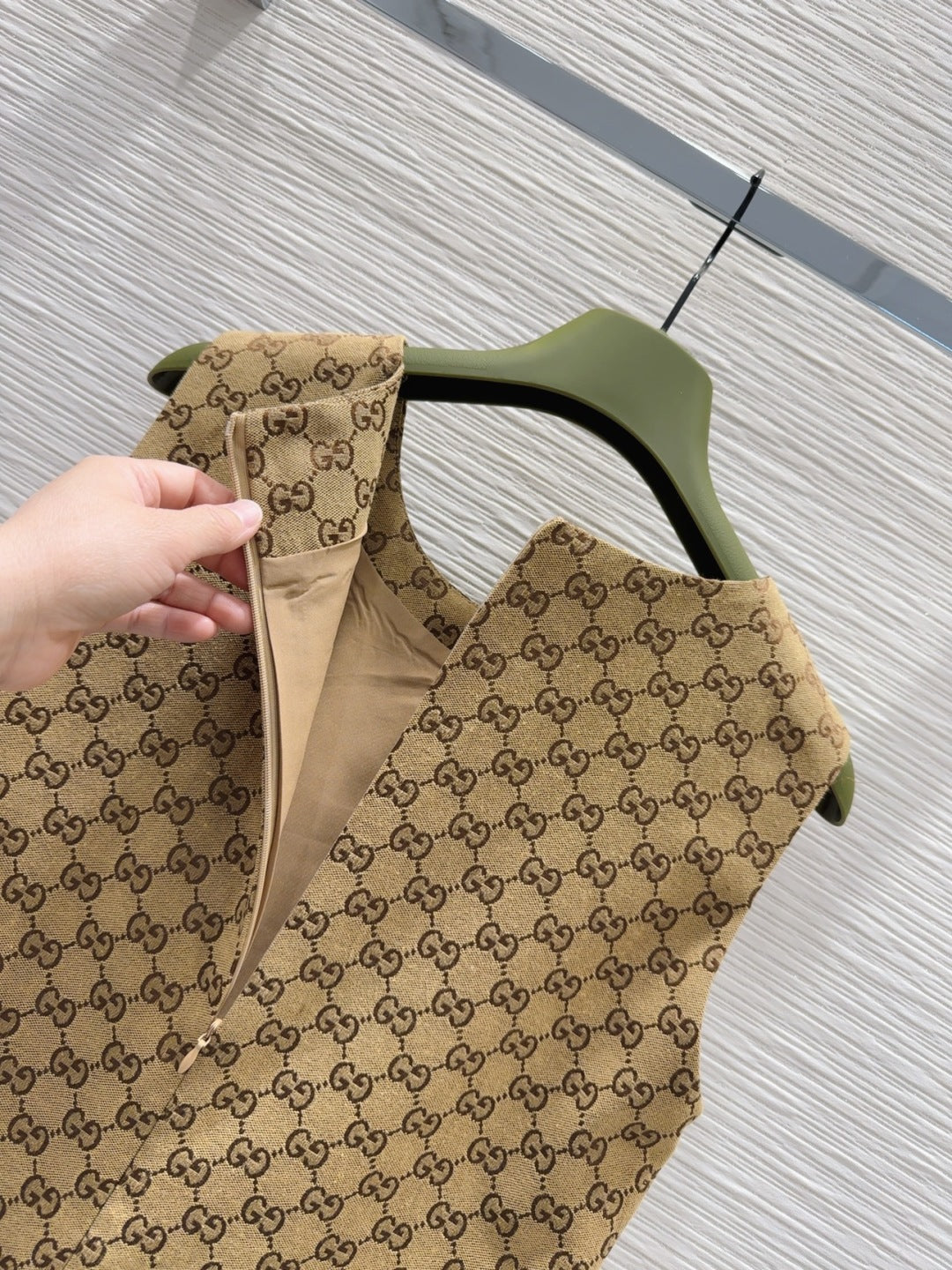 Gucci 2025 MidiDress Camel and Ebony Polyester Fiber