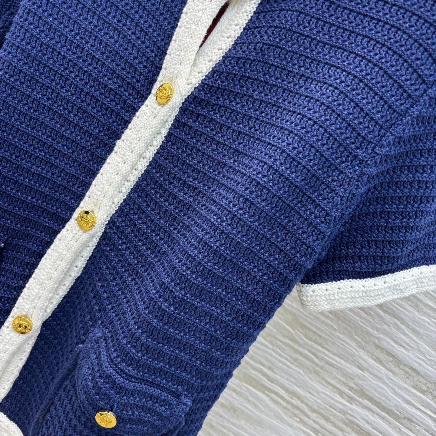 Gucci 25 Knitted Short-sleeved Cardigan Navy Blue Cotton