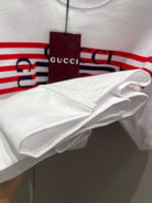 Gucci 25 Striped Logo Print Short-sleeved T-shirt White Red Cotton
