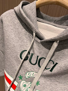 Gucci Embroidered Logo Badge Striped Print Hooded Gray Cotton