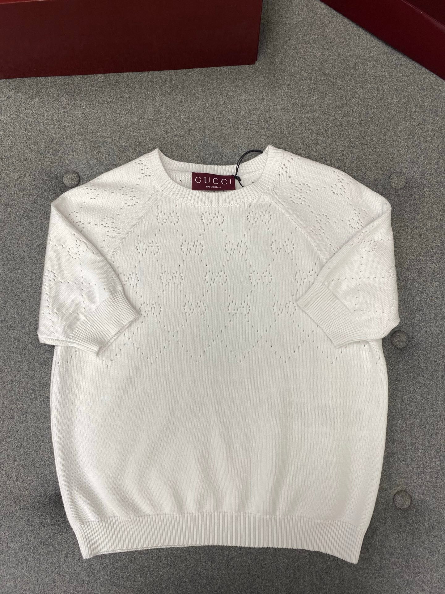 Gucci Round Neck Short Sleeves Top White Cotton