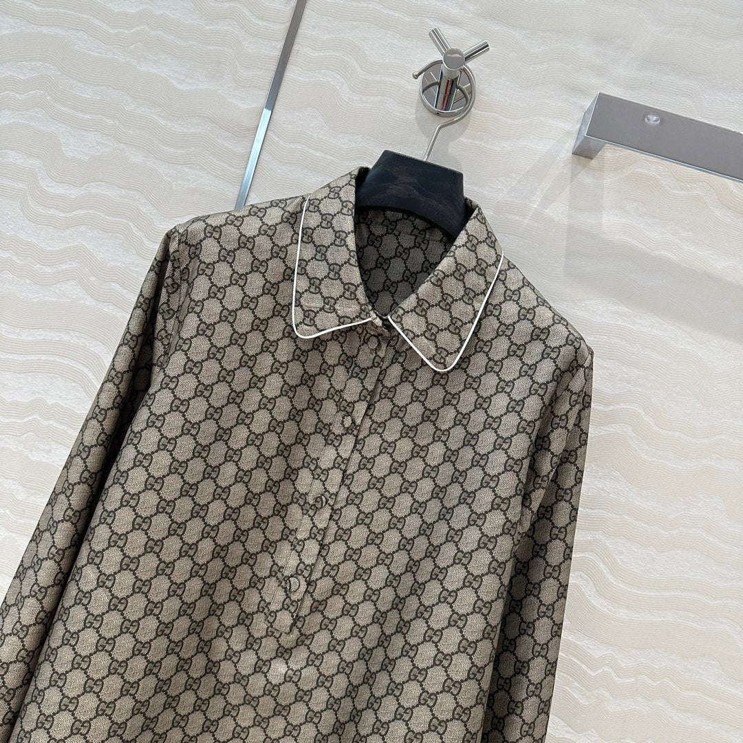 Gucci 2025 Shirt Camel and Ebony Polyester Fiber