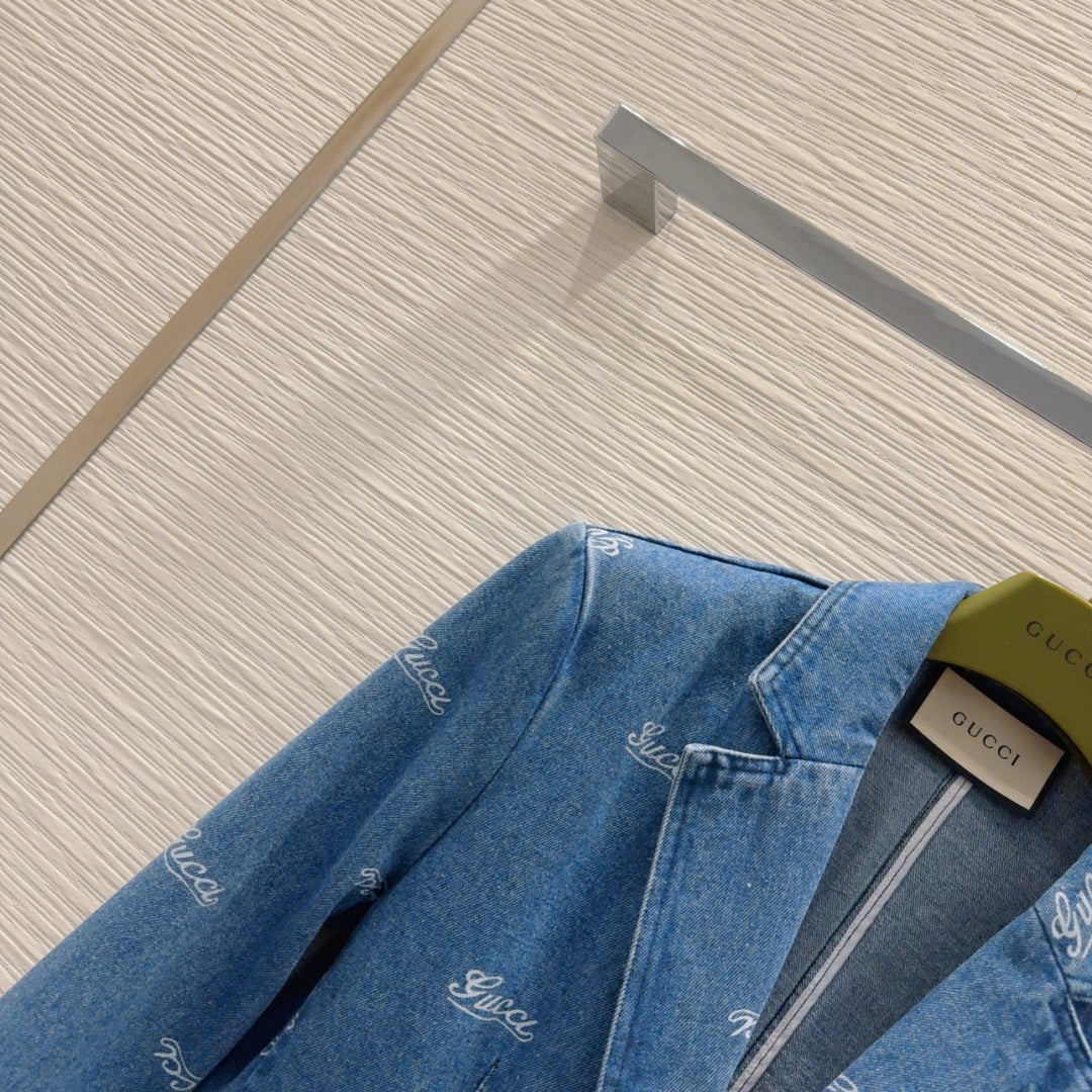 Gucci 2025 Logo Jacquard Straight Jeans Blue Cotton