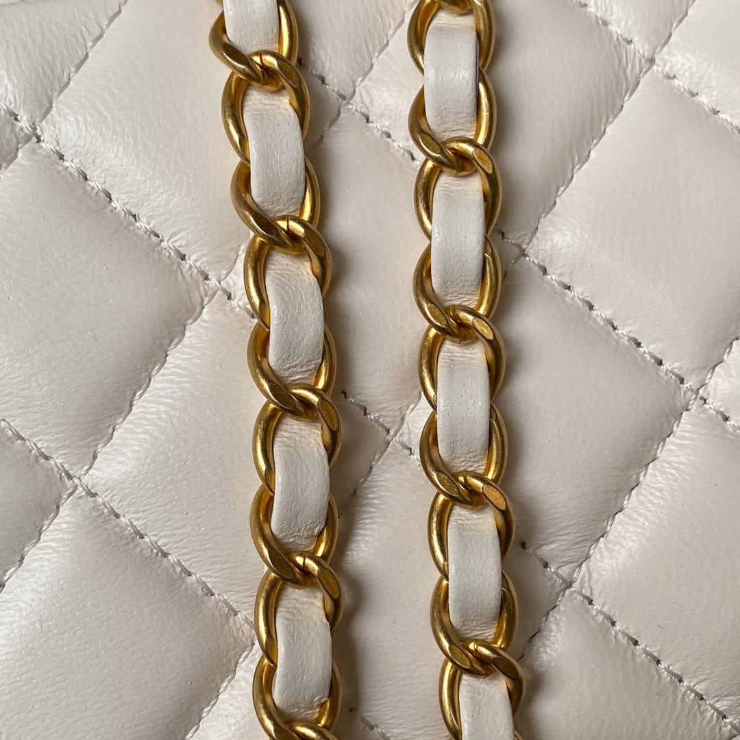 CC Vanity Case 17cm White Lambskin Gold hardware