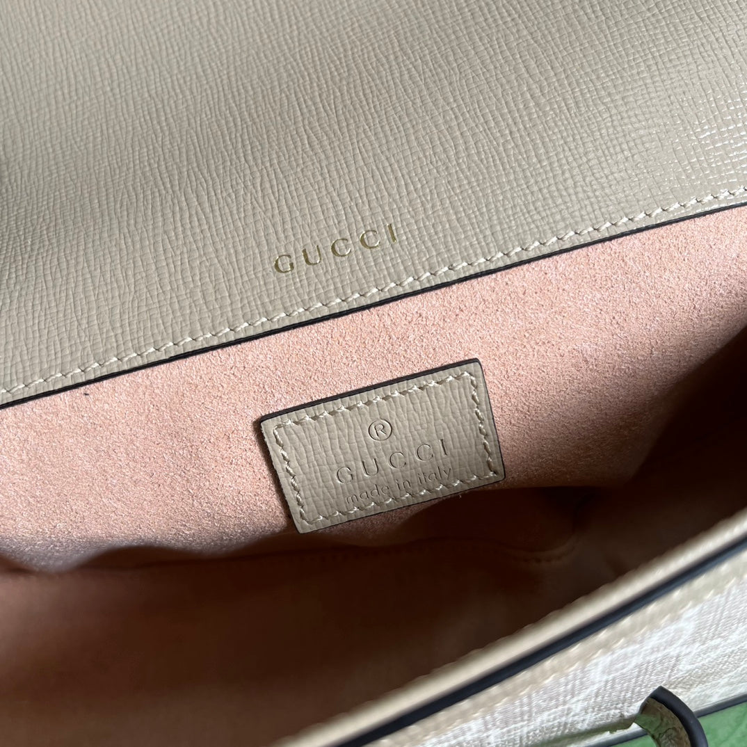 GG HORSEBIT 1955 BAG 24 IN WHITE CANVAS AND BEIGE CALFSKIN