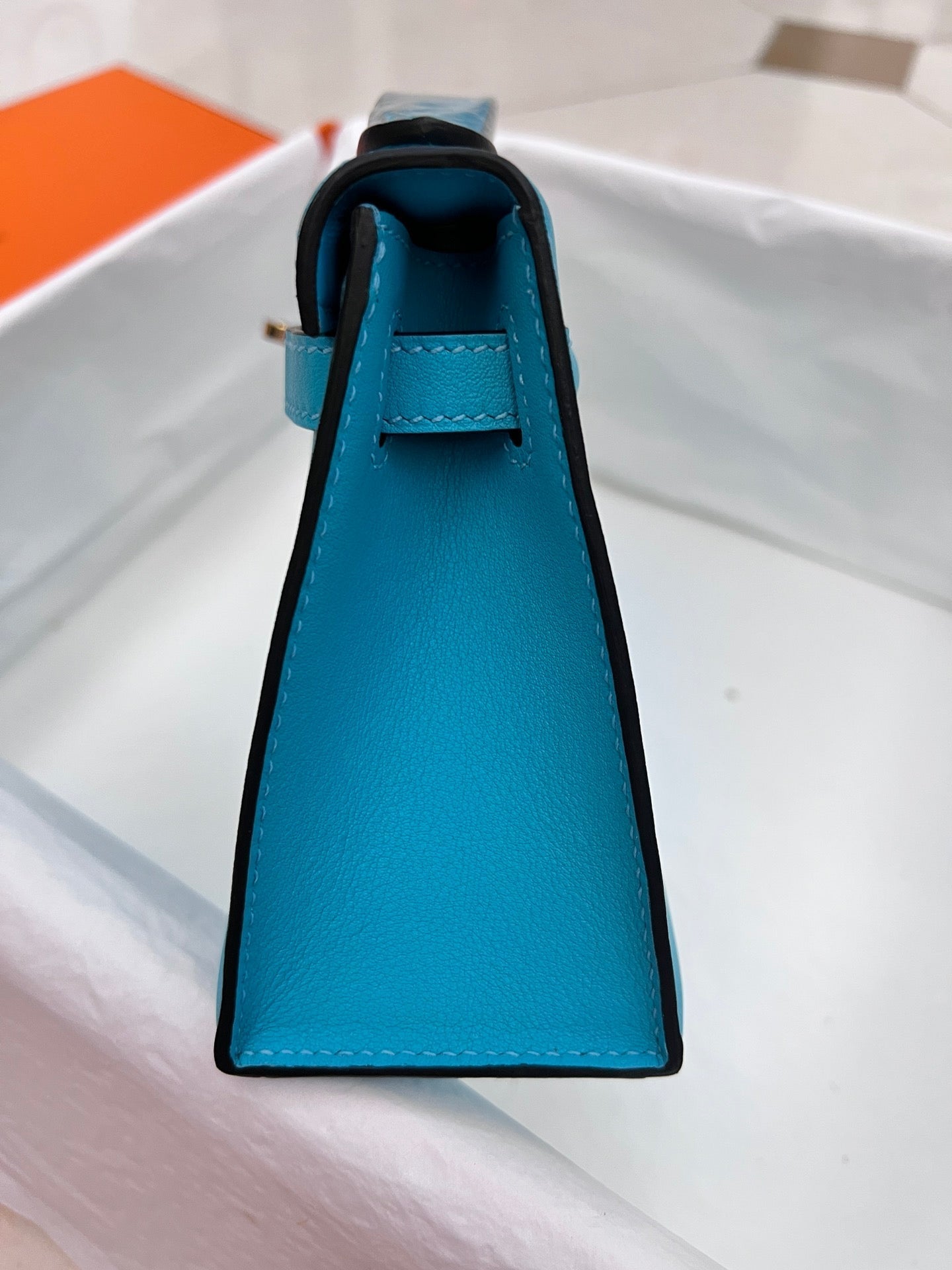 HM KELLY POCHETTE 22CM CERULEAN SWIFT GOLD HARDWARE