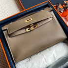 HM Kelly Pochette 22cm Gris Elephant Swift Gold Hardware
