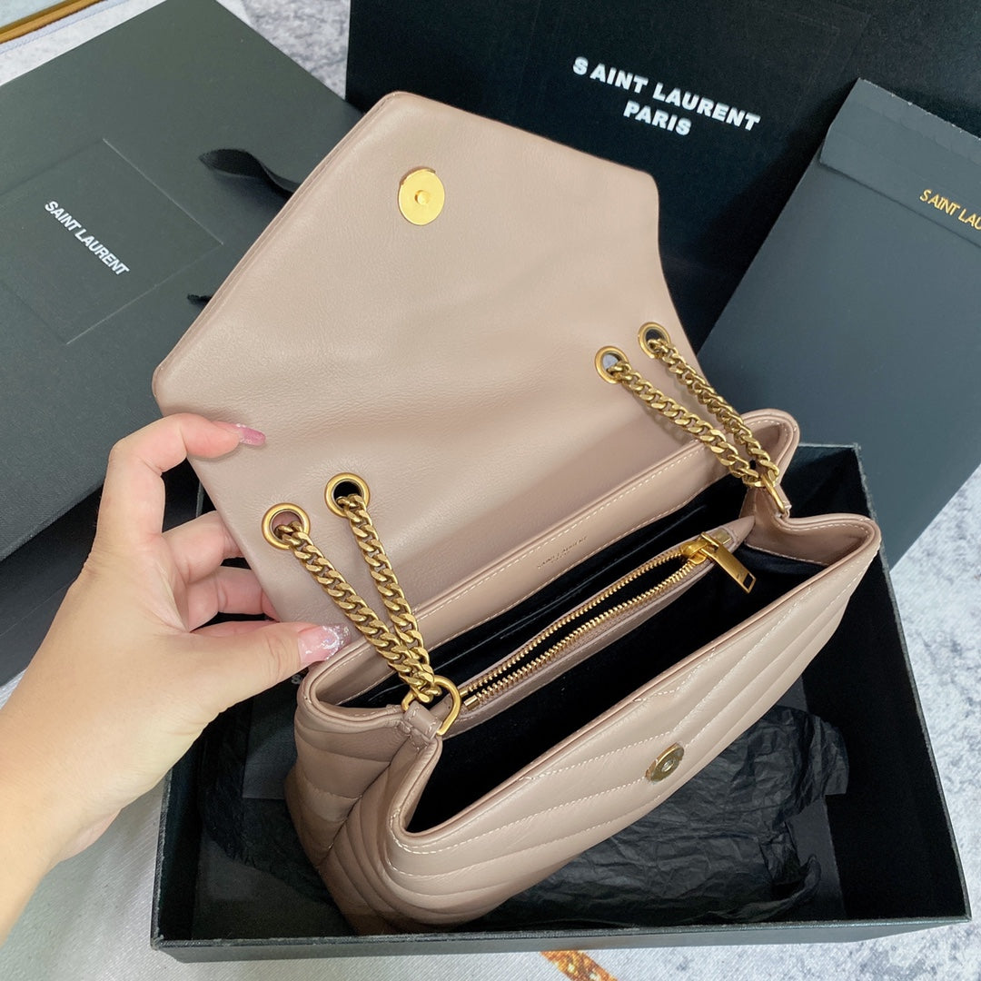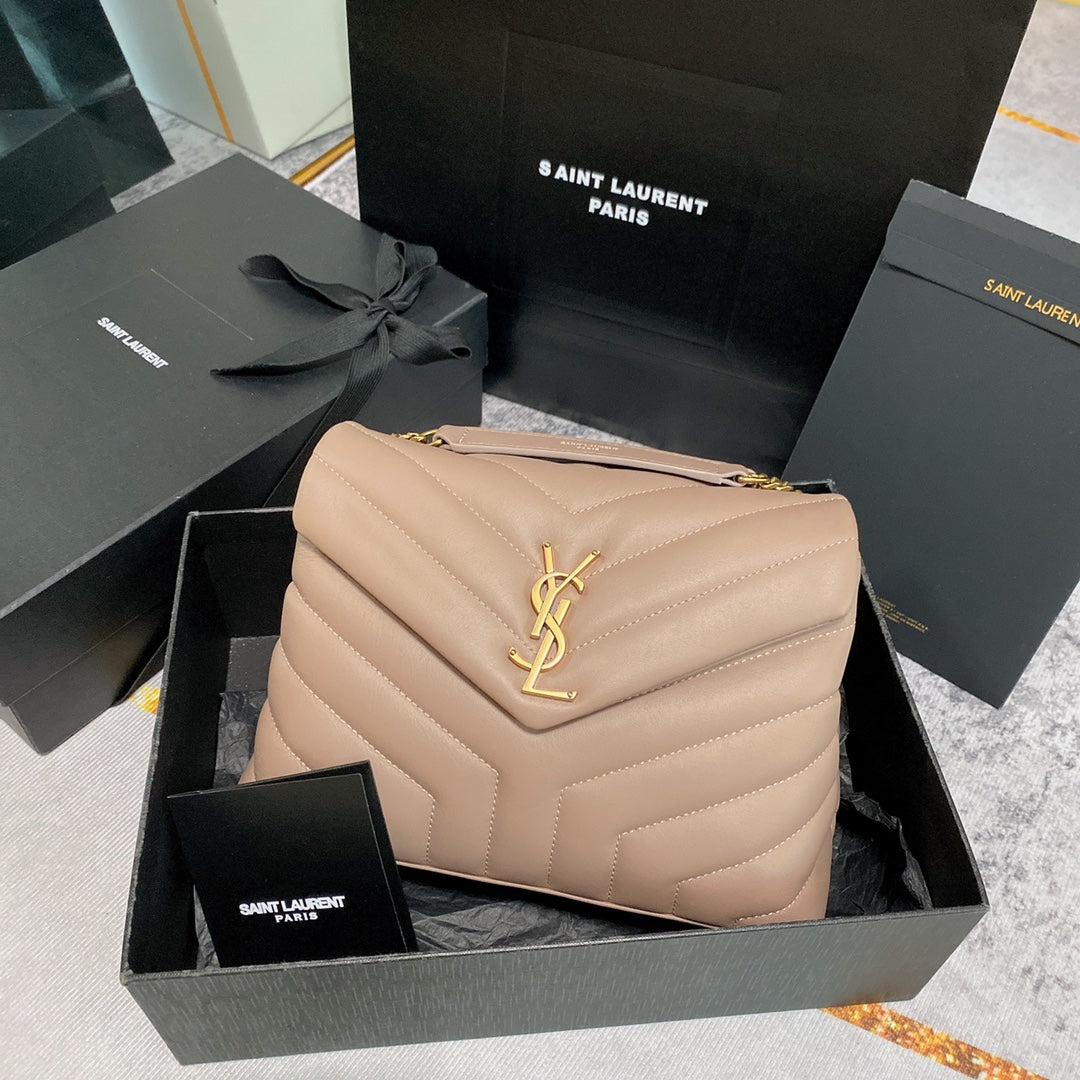 LOULOU PUFFER SMALL 25CM DARK BEIGE QUILTED LAMBSKIN