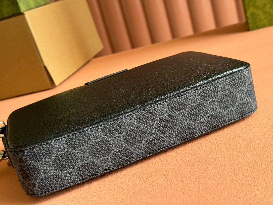 SMALL CROSSBODY BAG 24 WITH TAG IN BLACK CALFSKIN AND CANVAS TRIM