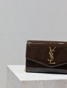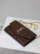 uptown chain wallet 19cm dark brown patent calfskin