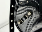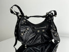 LE CAGOLE LARGE SHOULDER BAG 33 WITH RHINESTONES IN BLACK ARENA LAMBSKIN SILVER HARDWARE