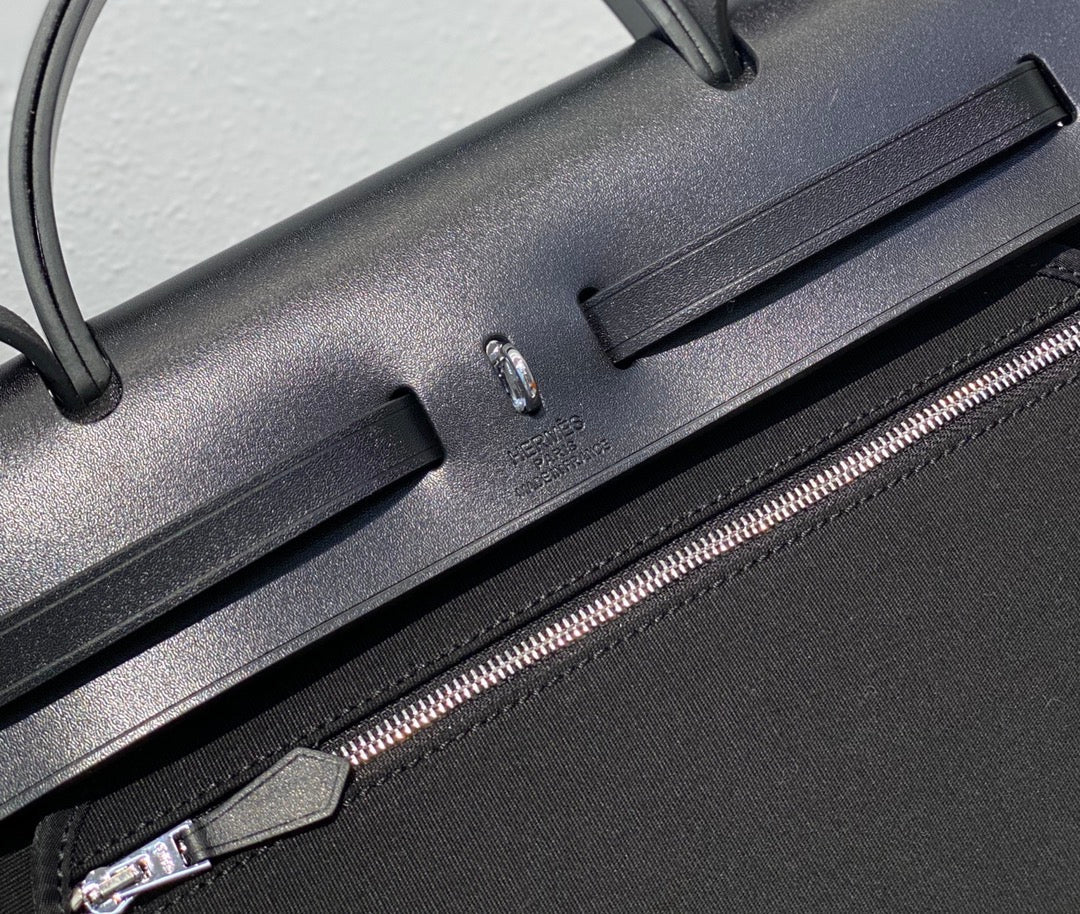 Herbag 31 Toile Black Canvas Black Cowhide Leather