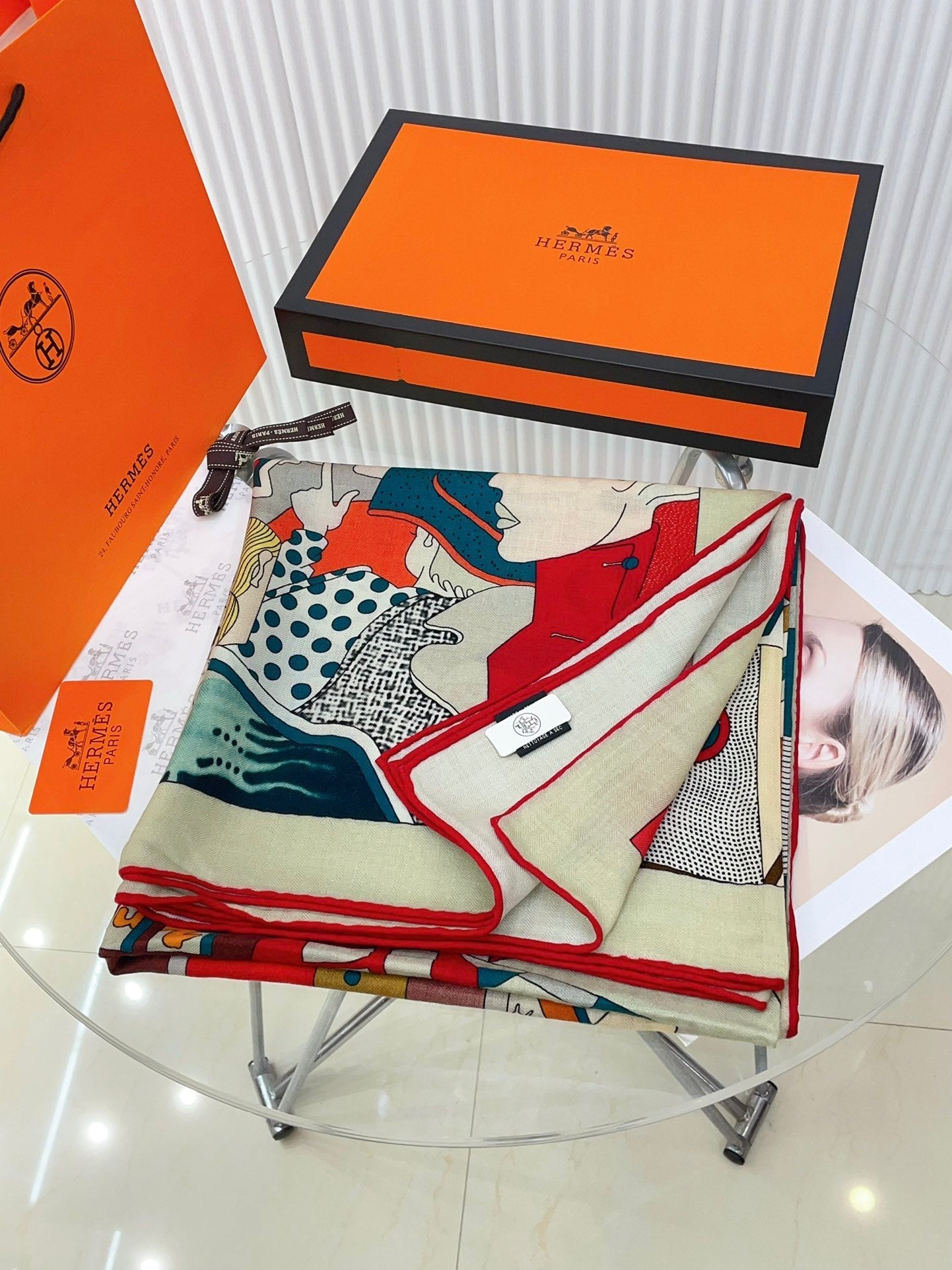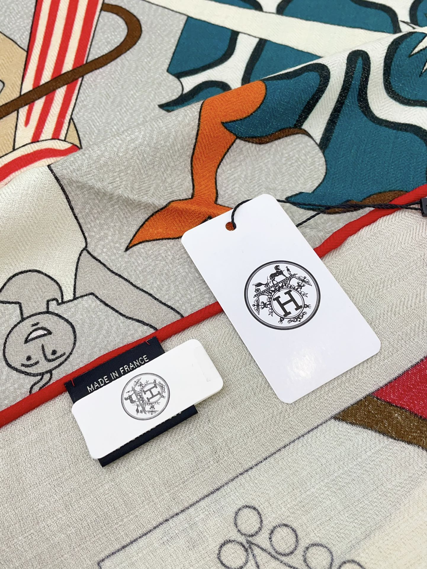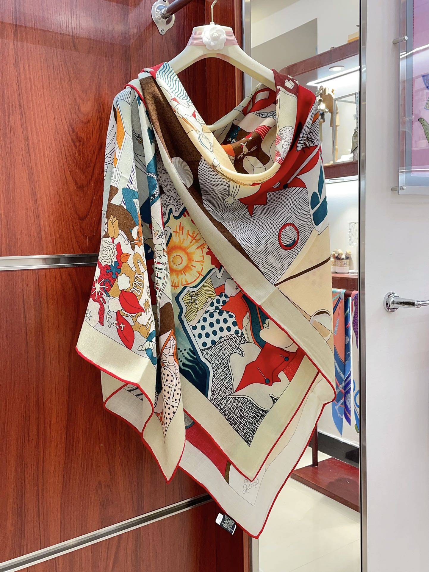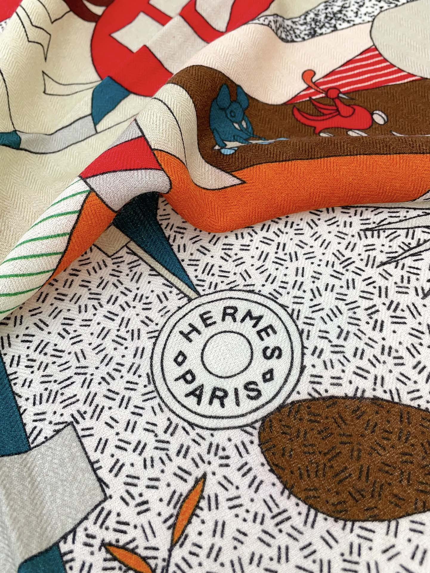 Ca Decoiffe ! Scarf 140 CM In White Colorful Cashmere And Silk 378470