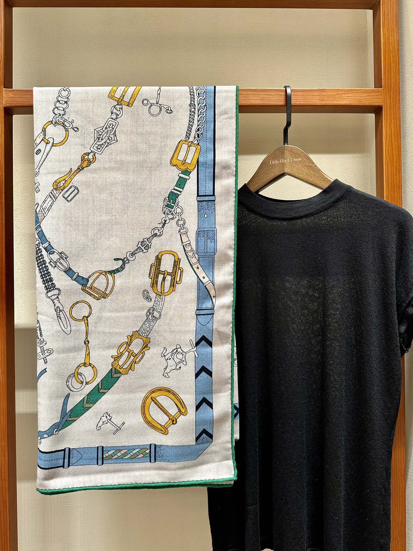 Chevaux Dechaines Shawl 135 CM IN Light Blue Colorful Cashmere Silk 373686