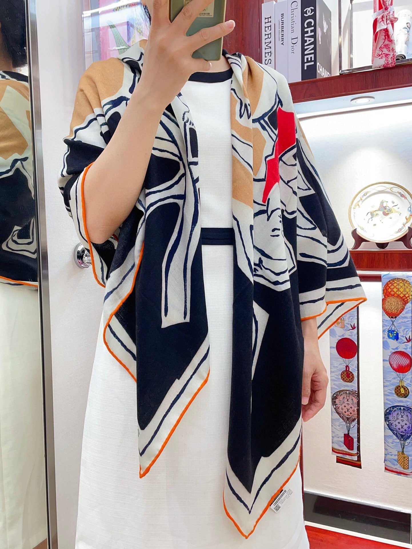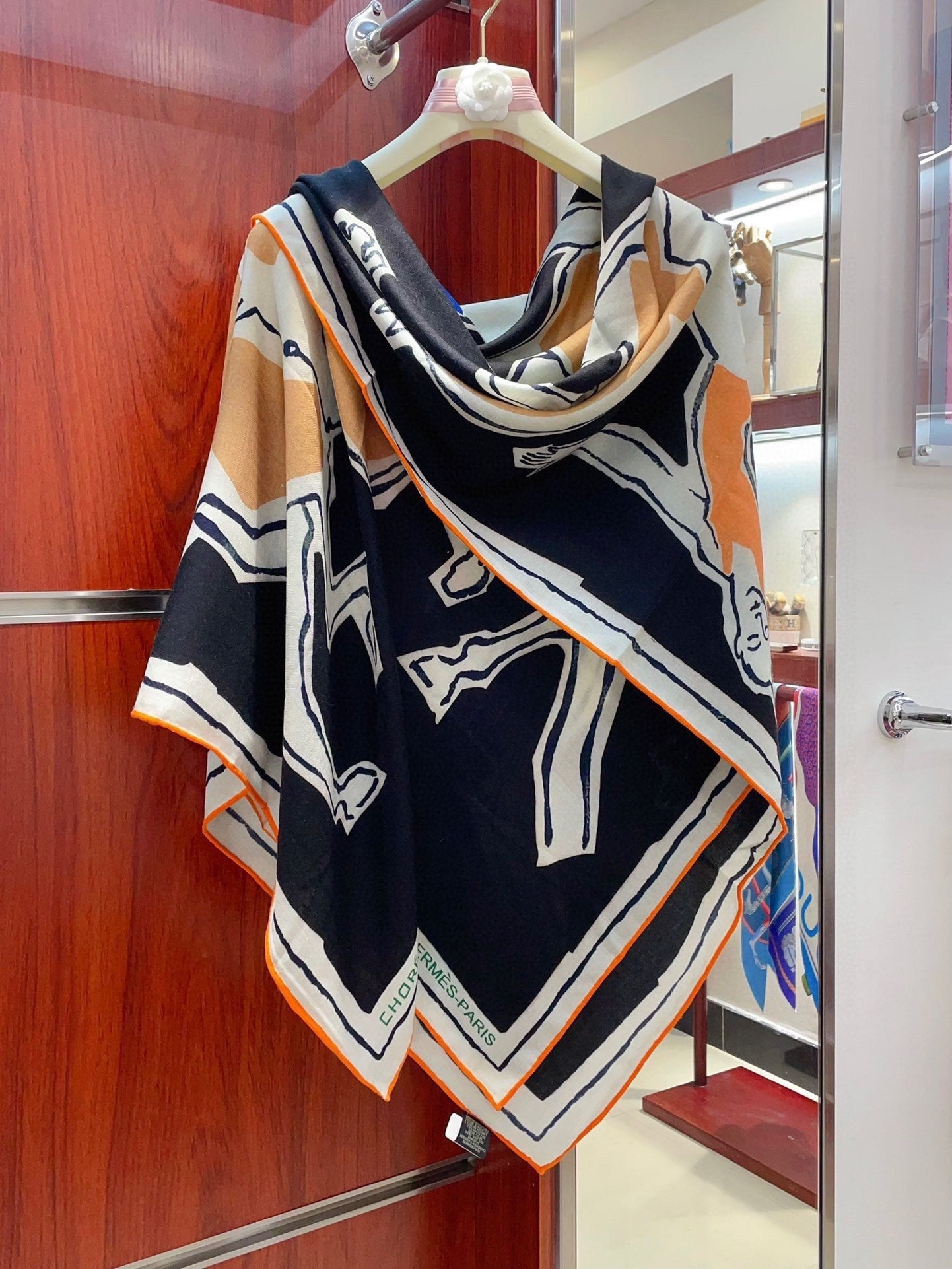 Choregraphie Equestre Scarf 140 CM Black Colorful Cashmere And Silk 393169