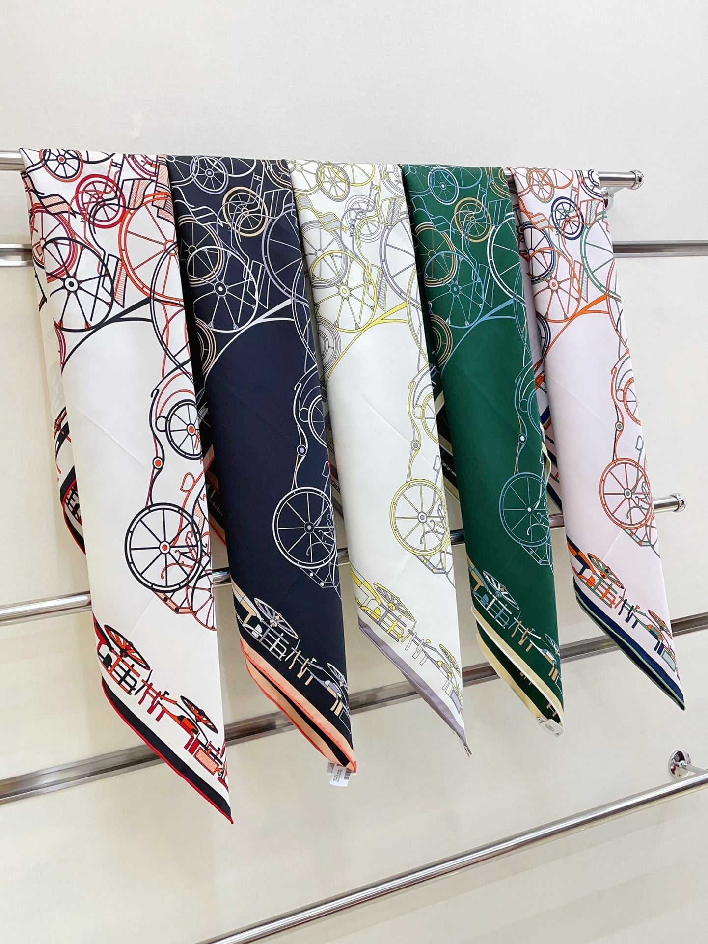Complication Equestre Scarf 90 CM In White Orange Coloful Silk Twill 345897