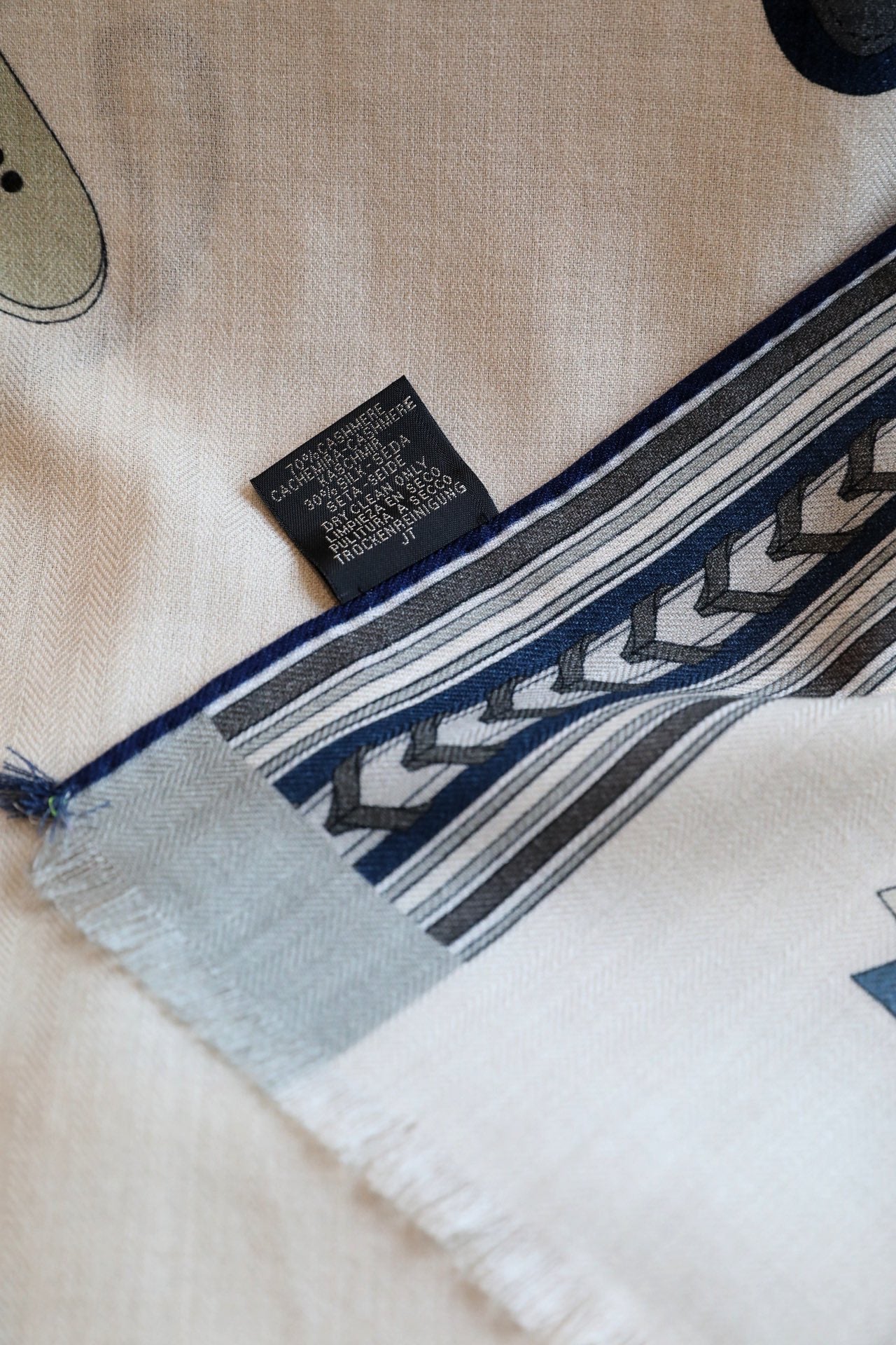 Et Gris Gris Rectangle Scarf 180 CM In White Colorful Cashmere and Mulberry Silk 401142