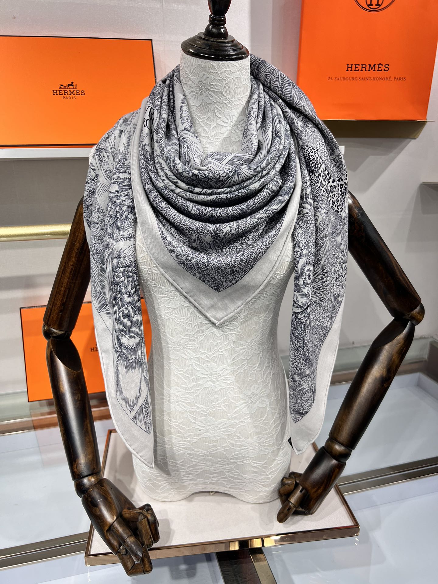 Faubourg Tropical Scarf 135 CM Grey White Cashmere And Silk