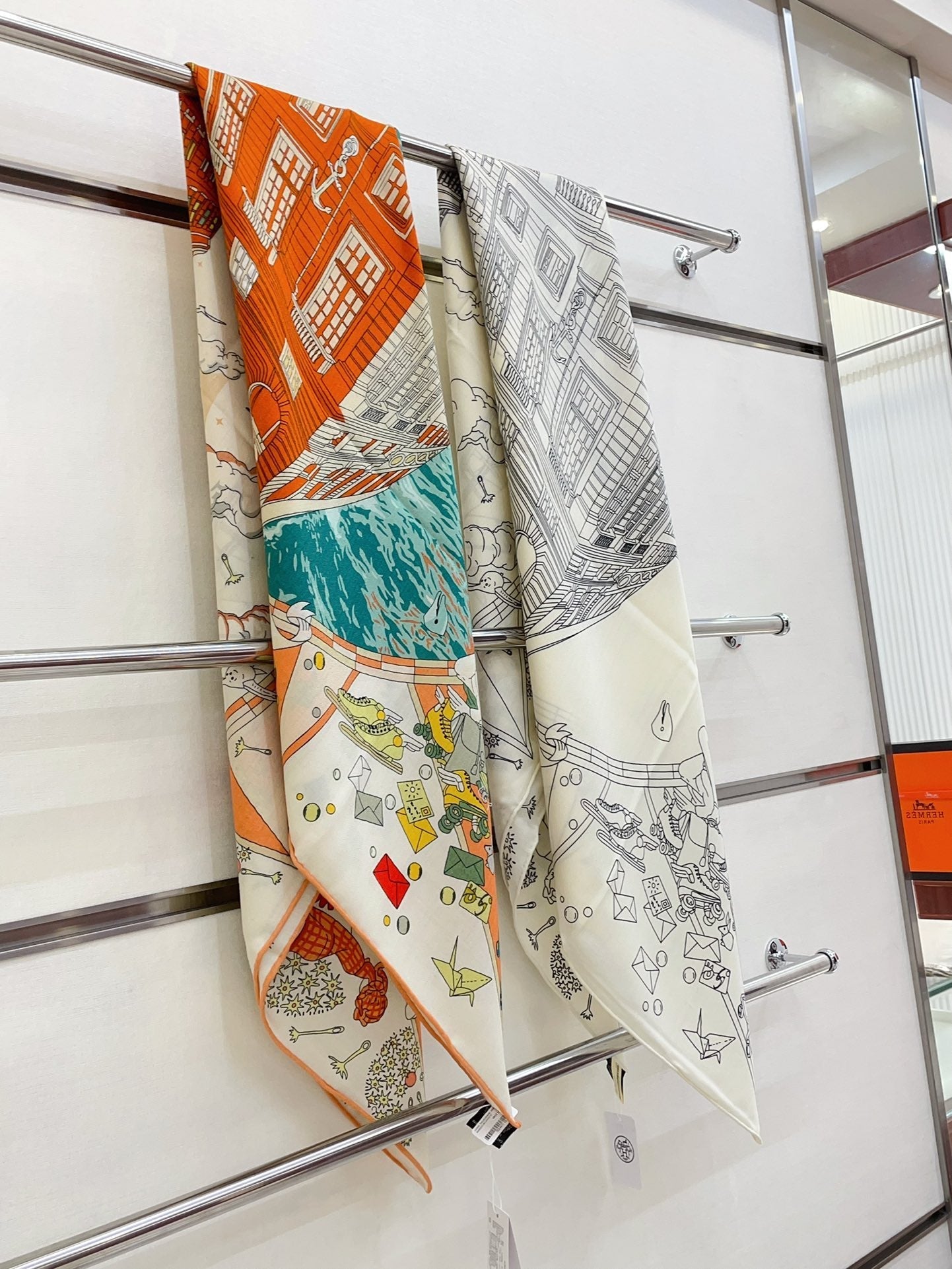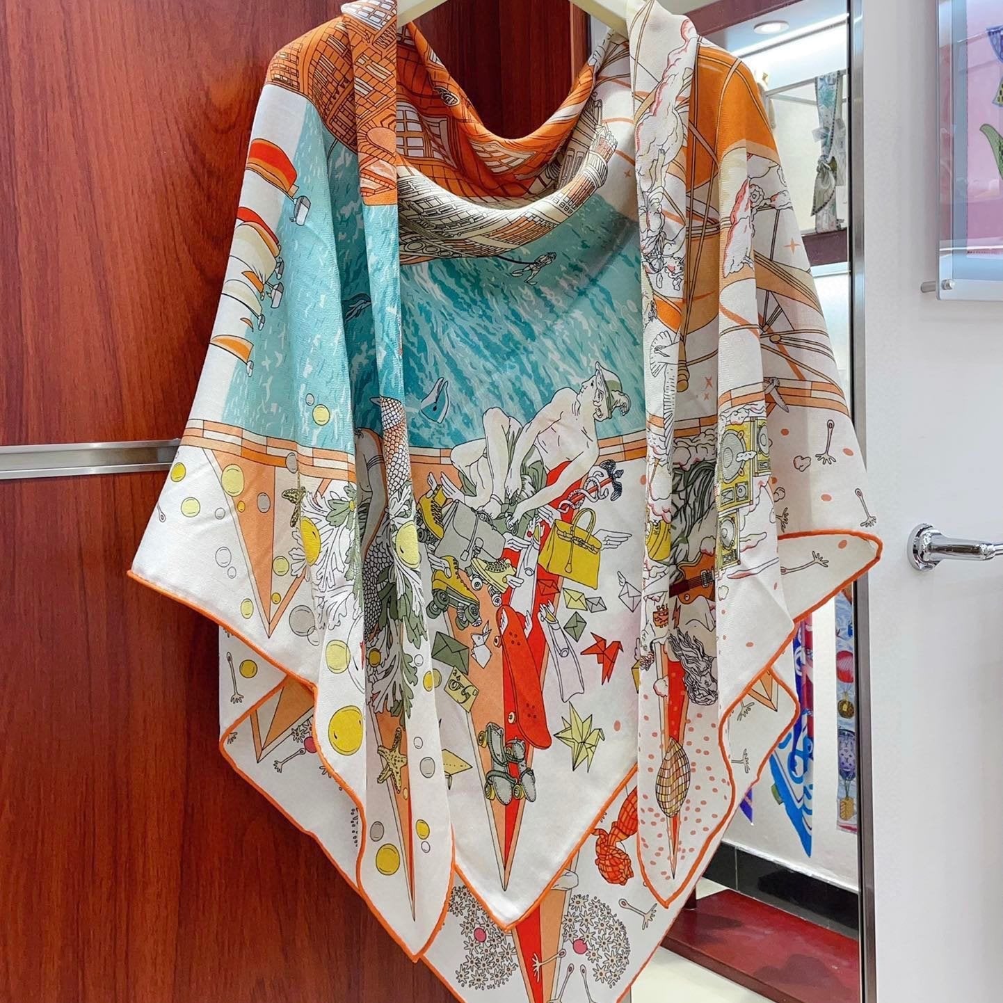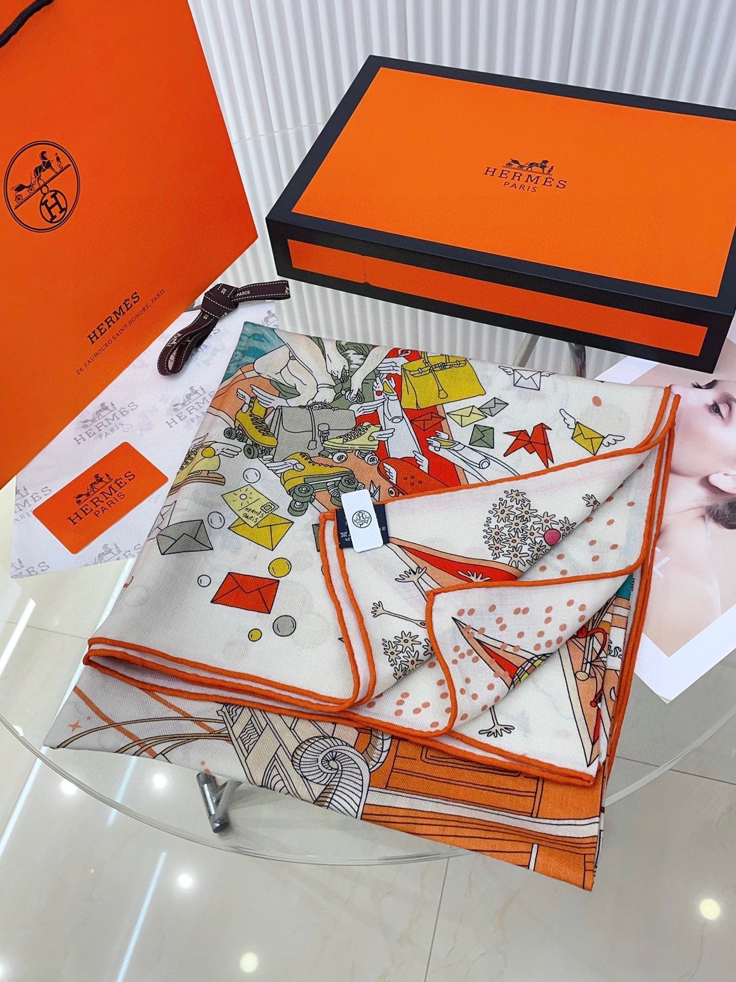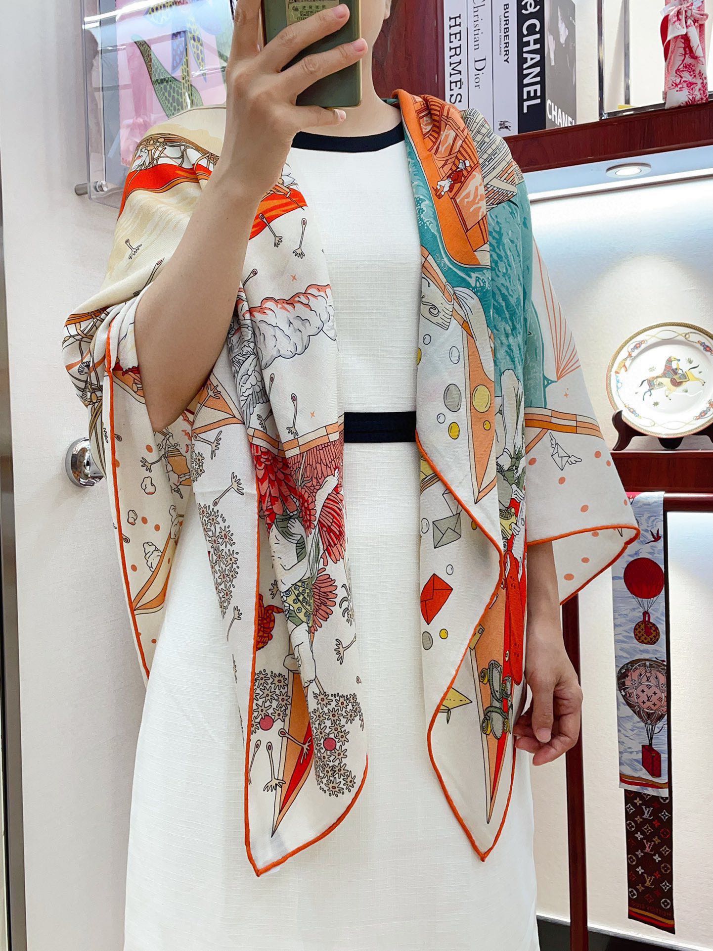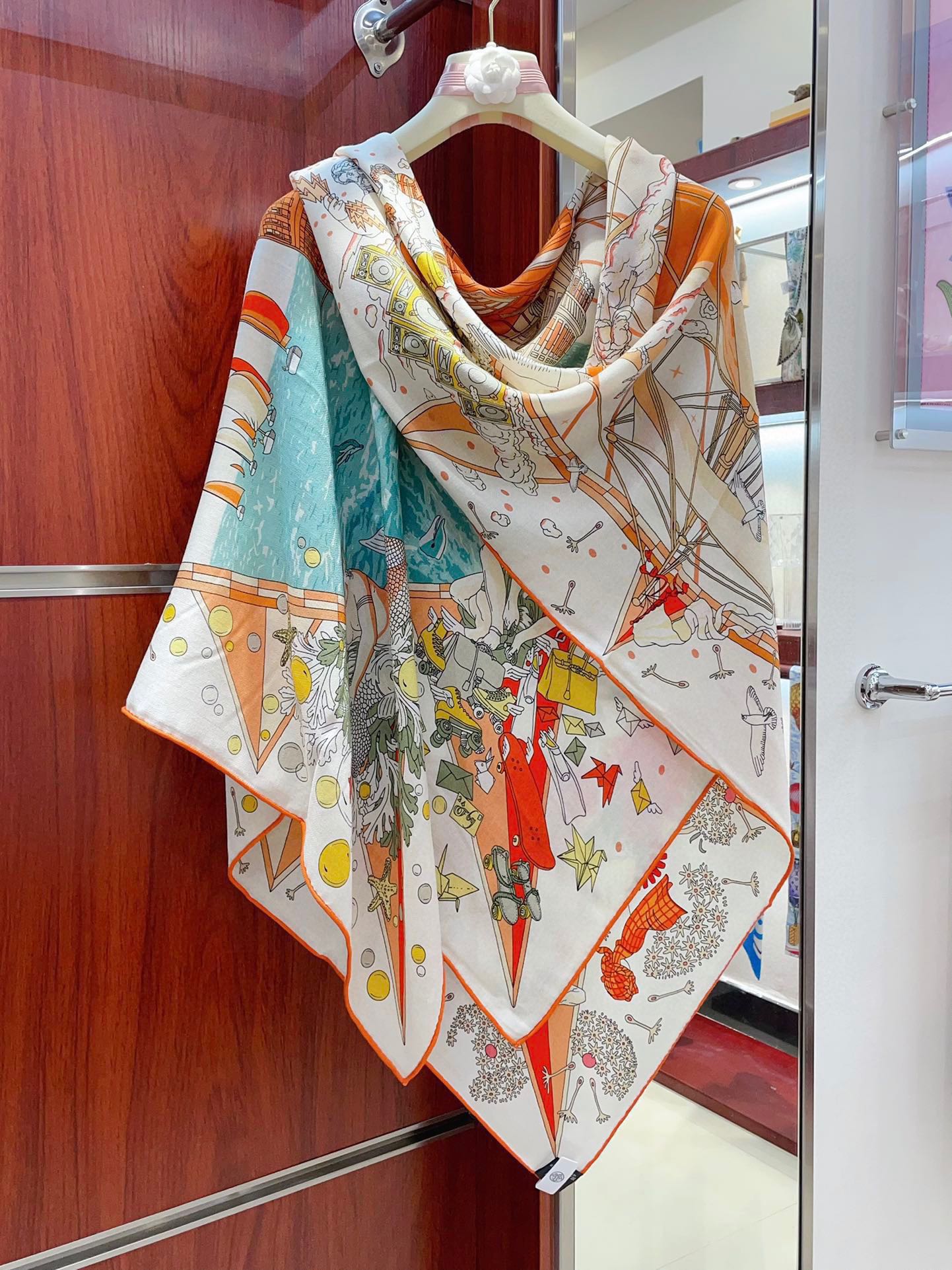 Flagship Scarf 135 CM White Colorful Cashmere And Silk 402079