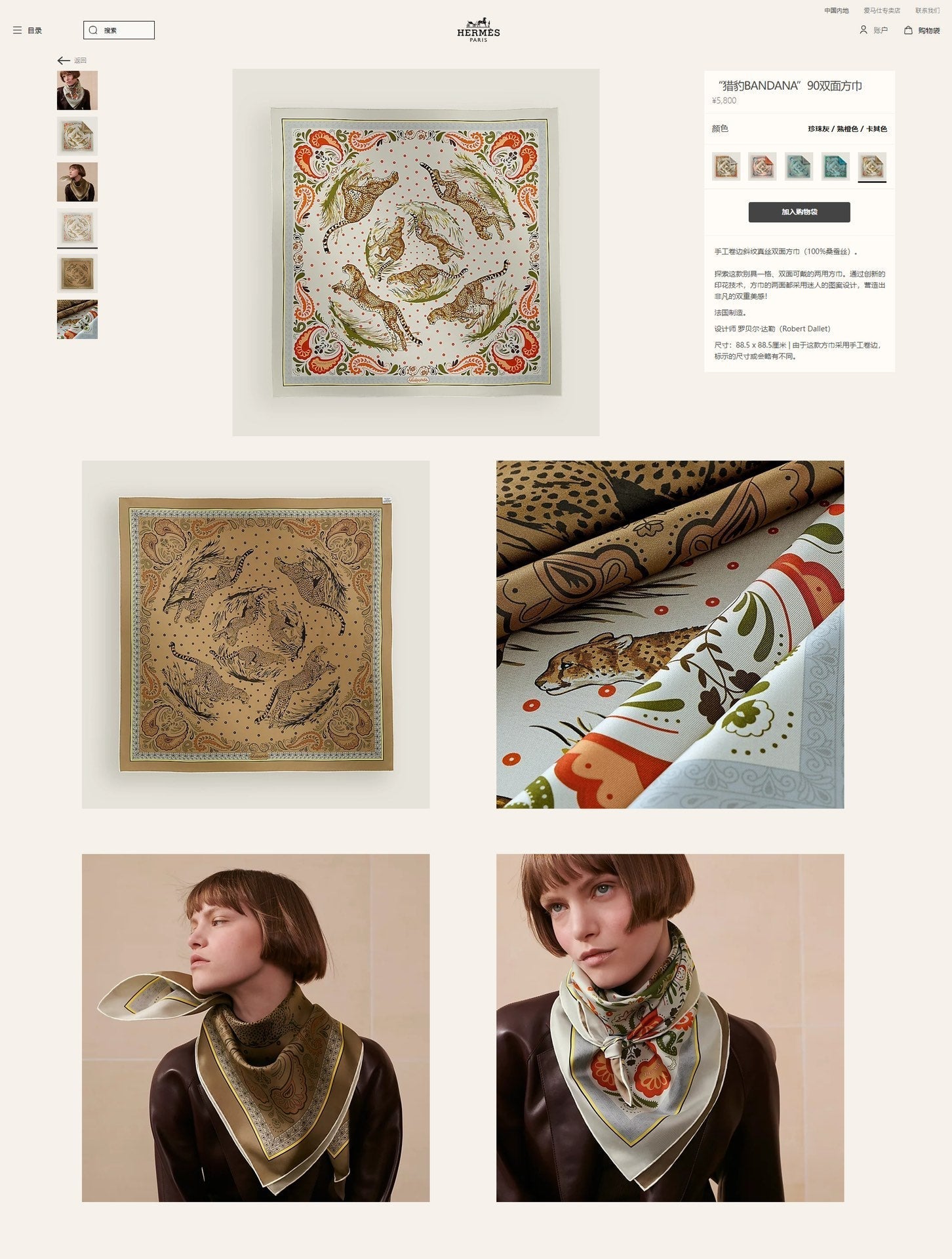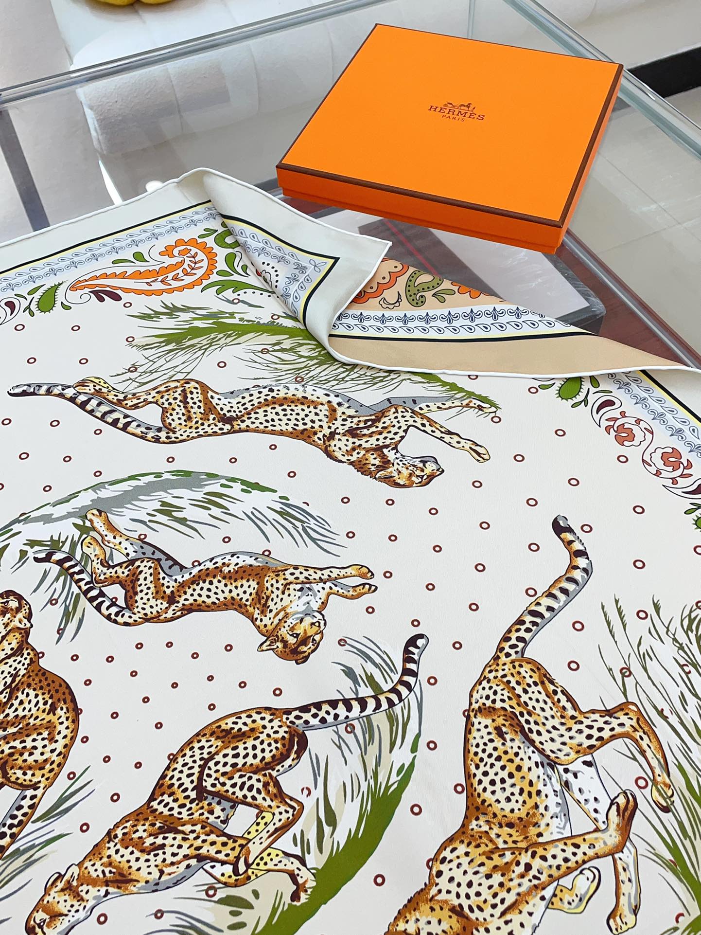 Guepards Bandana Double Face Scarf 90 CM In Colorful Silk 301849