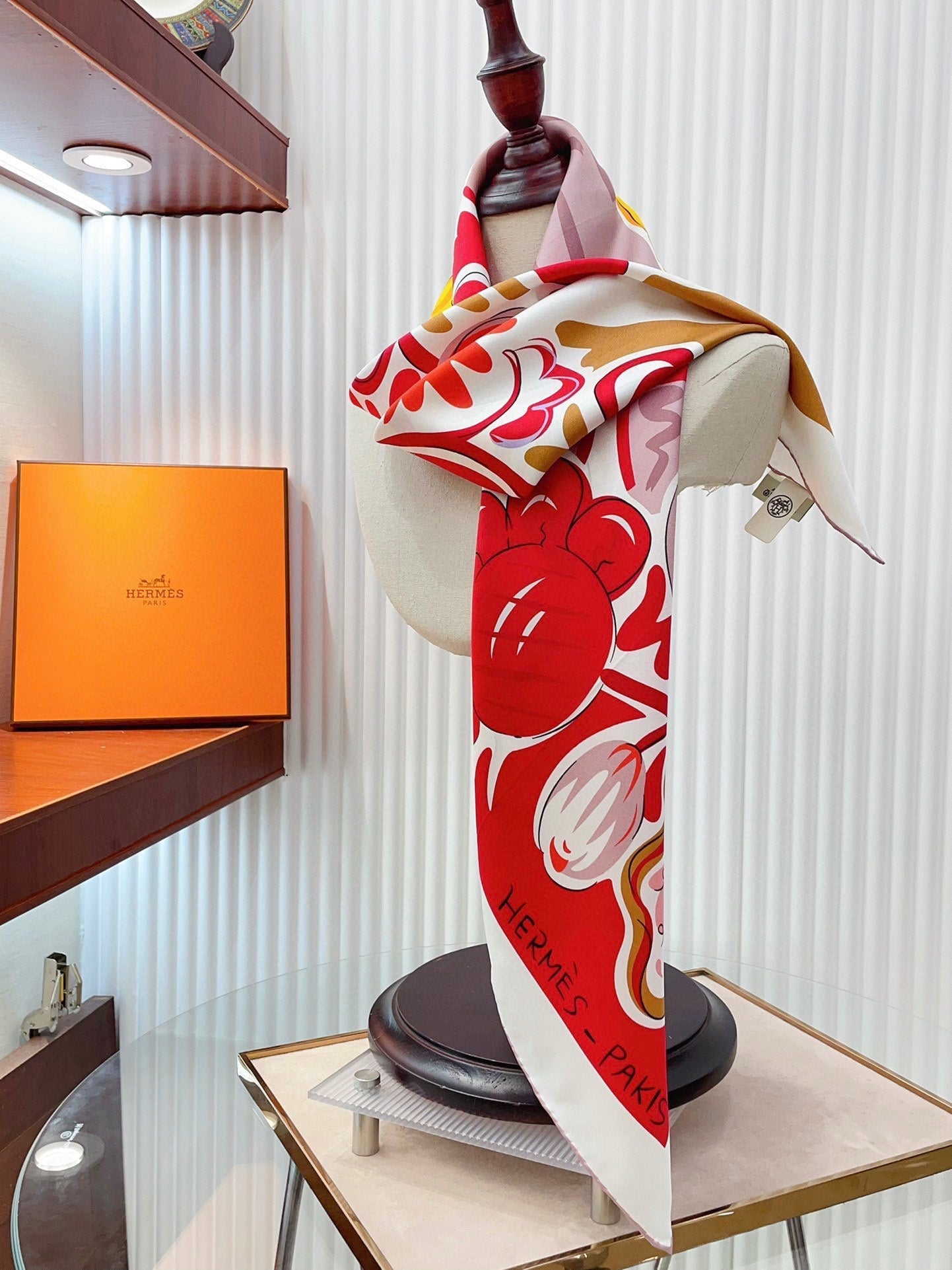 Le Cheval De Kazumi Scarf 90 CM Red Colorful Silk Twill 347388