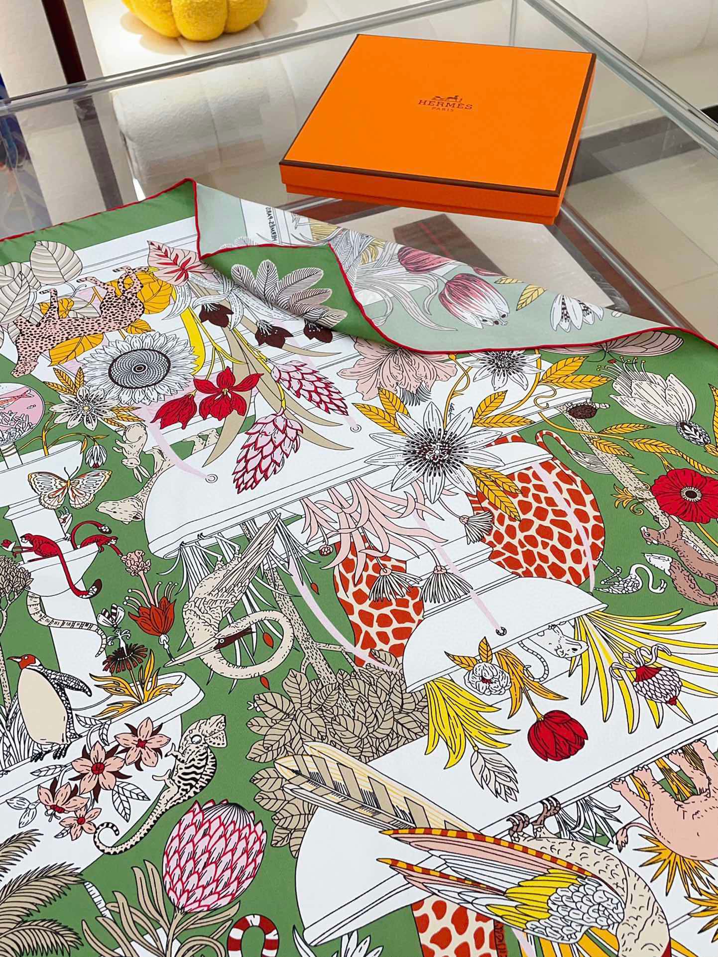 Precious Paradise Scarf 90 CM In Green Colorful Silk Twill 294486