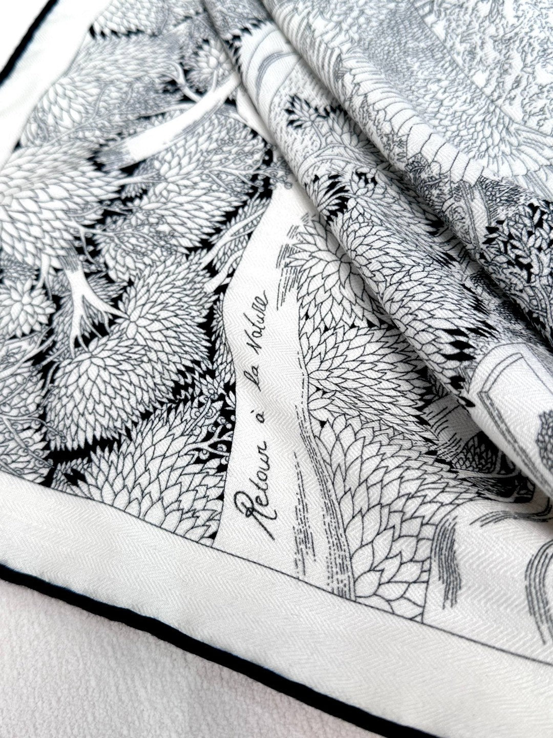 Retour A La Nature Shawl 135CM In Black White Colorful Cashmere And Silk