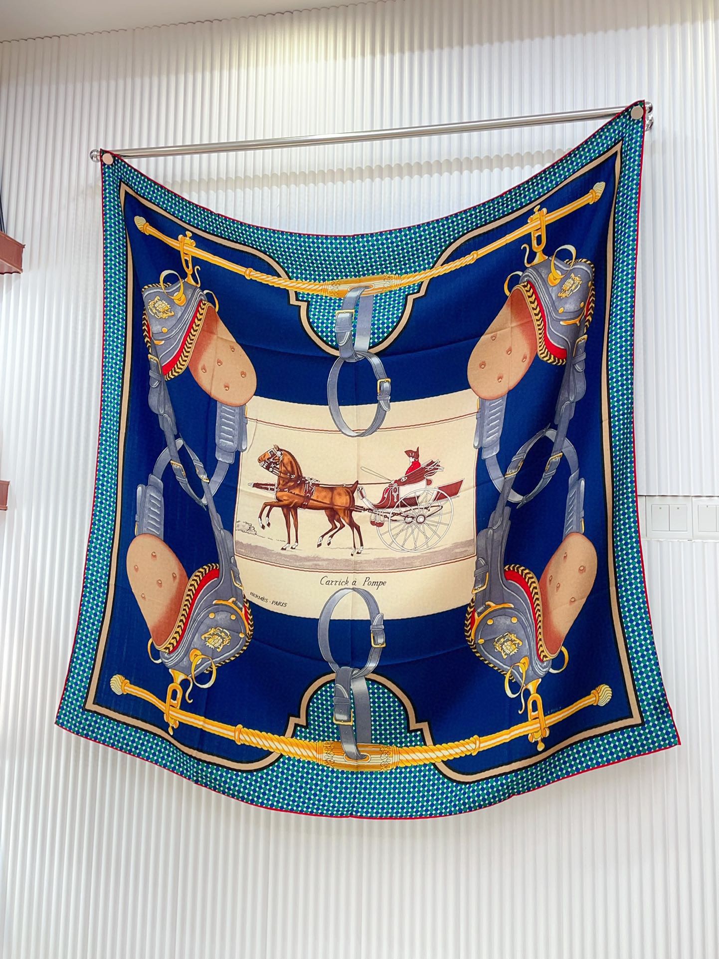 Silk Carrick a Pompe Scarf 140 CM In Dark Blue Colorful Cashmere And Silk 381156