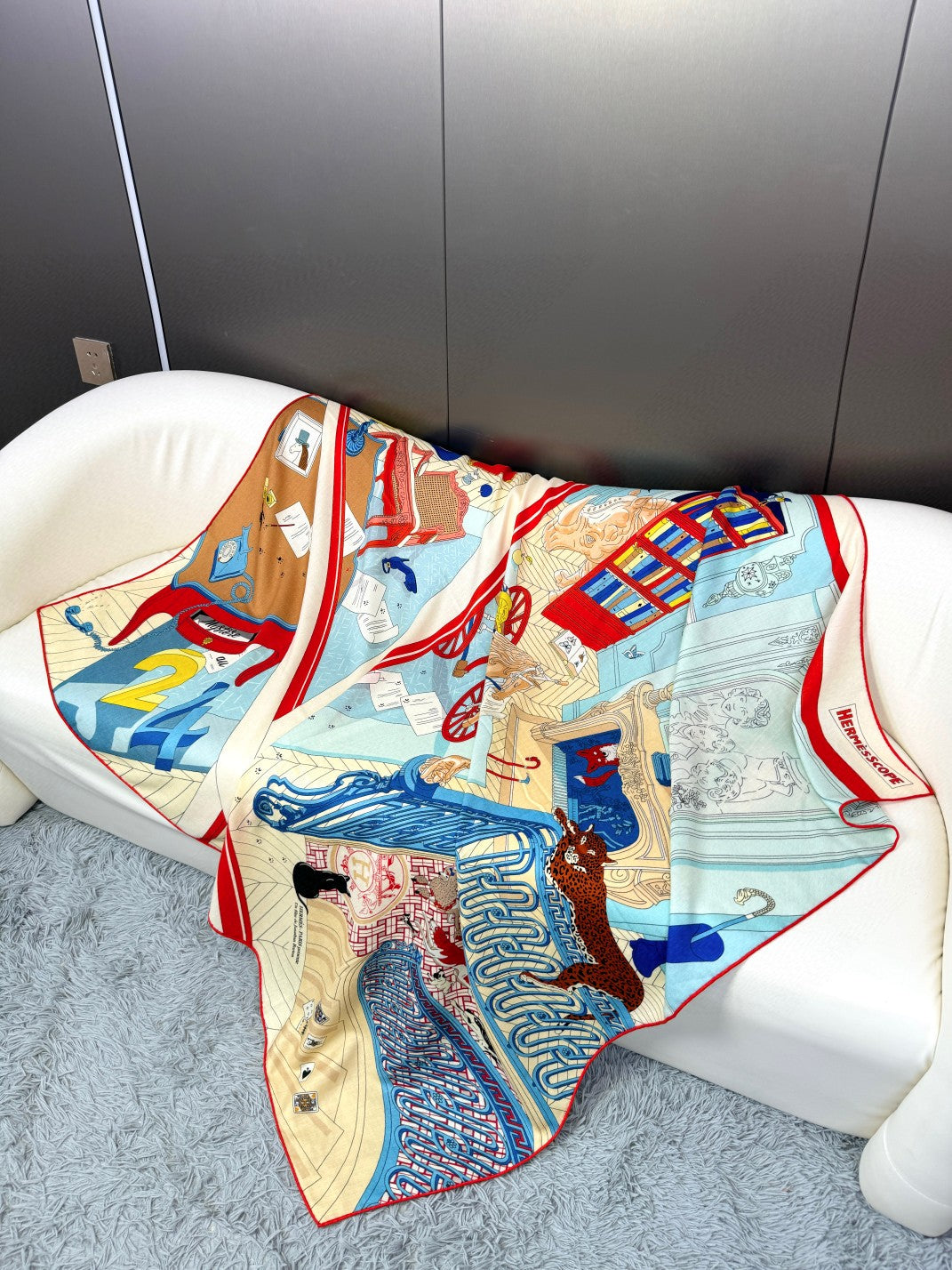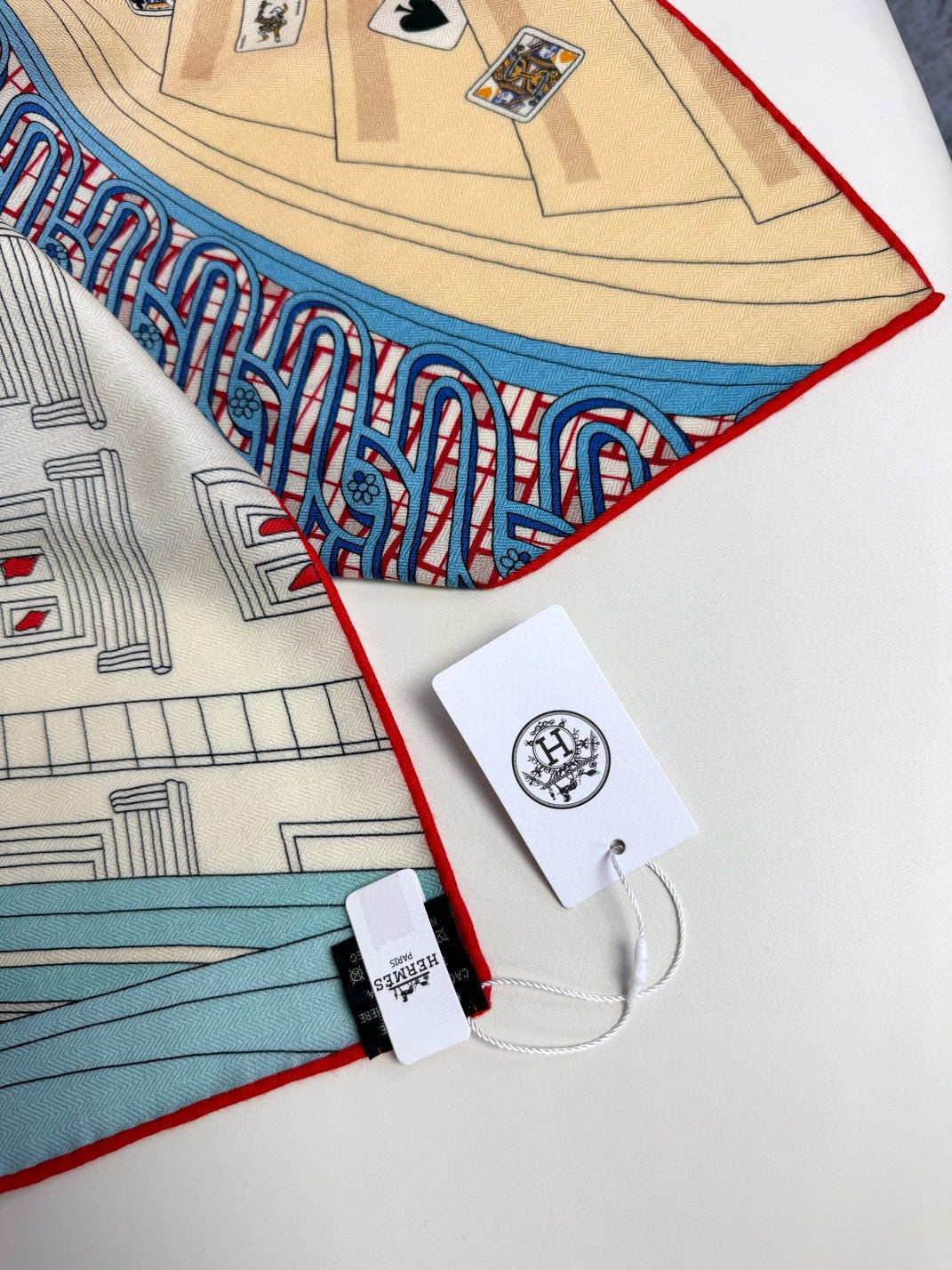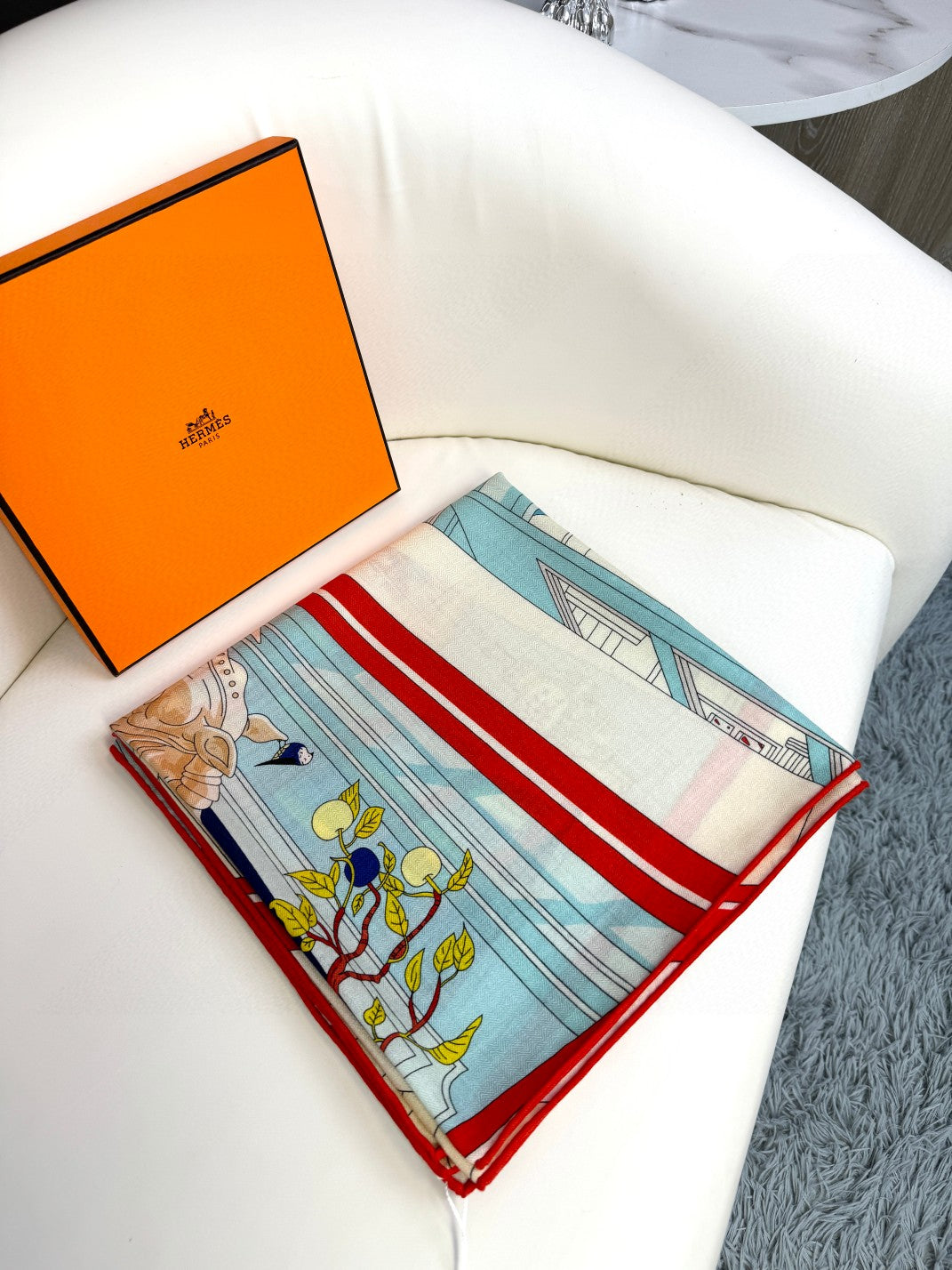 Square scarf 135 CM Light Jade Blue Colorful Cashmere And Silk