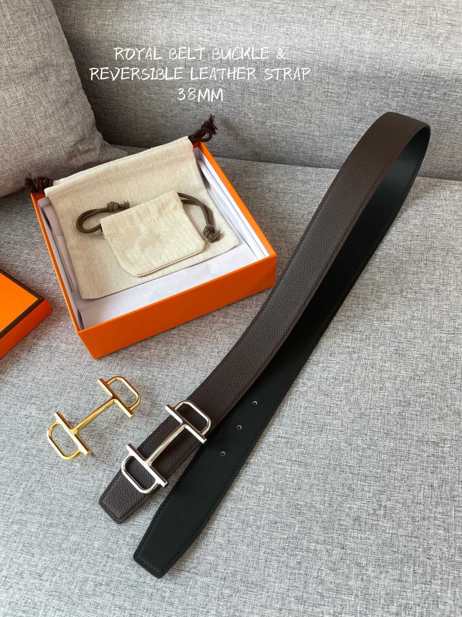 H BELT REVERSIBLE BLACK BROWN LEATHER 3.8CM