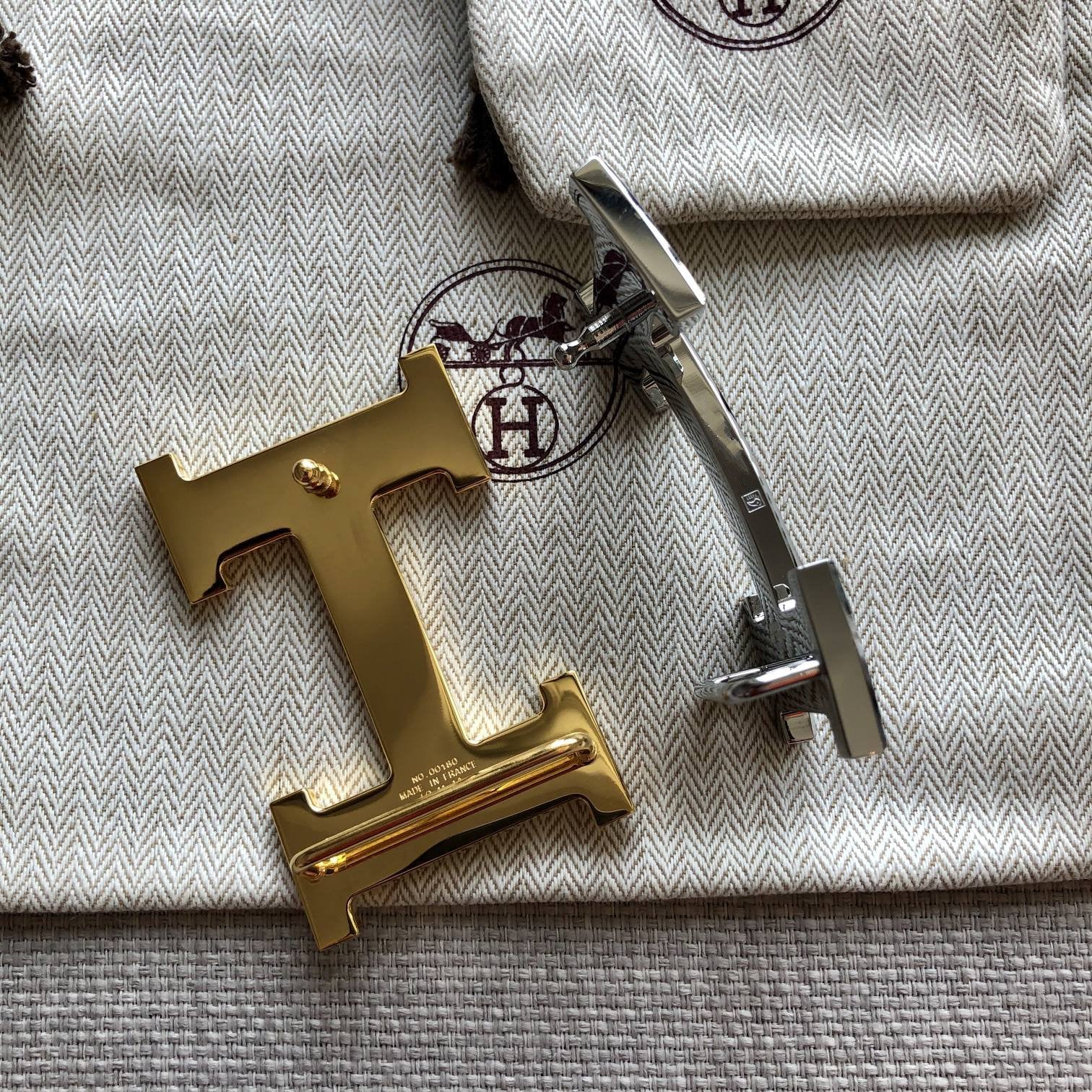 H Buckle in permabrass plated metal.
